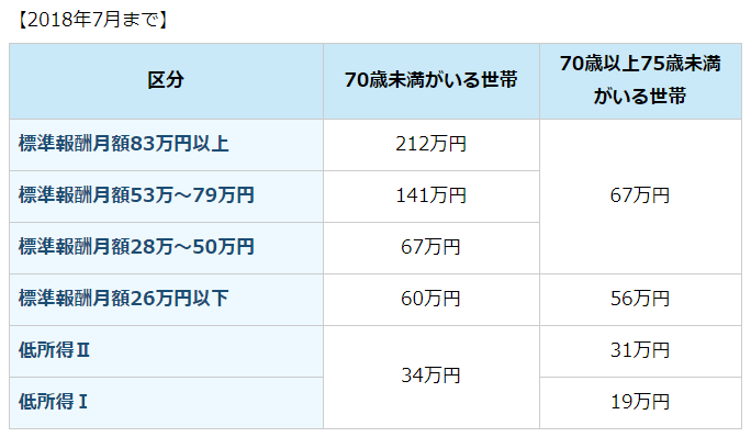 1カ月あたりの医療費の自己負担限度額は、70歳以上の人は70歳未満の人より低く設定されていますが、負担能力に応じた負担を求める観点から、2018年8月から下記のとおりに引き上げられます。